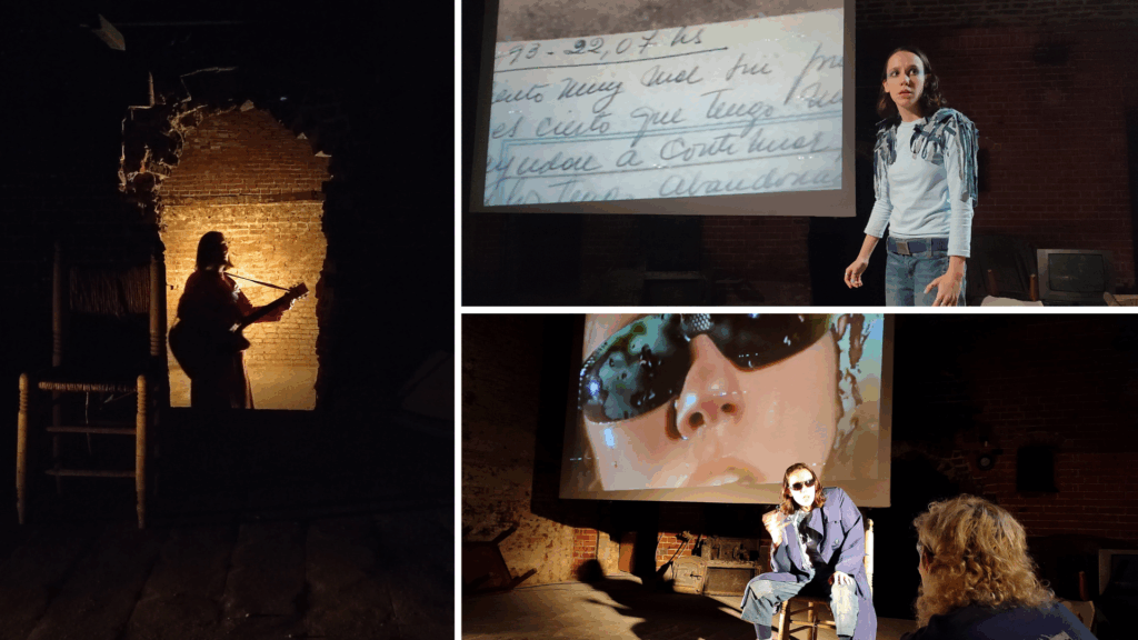 La actuación de Almudena González corporiza el tránsito entre esos estados juveniles. Entre el monólogo y la confesión, González logra sostener una tensión entre control y entrega, con movimientos de su cuerpo implican una reescritura del texto encontrado. Esa fisicidad titubeante, a veces torpe, siempre fresca, le da a la puesta en escena una respiración propia, la de una obra que se piensa mientras va sucediendo.