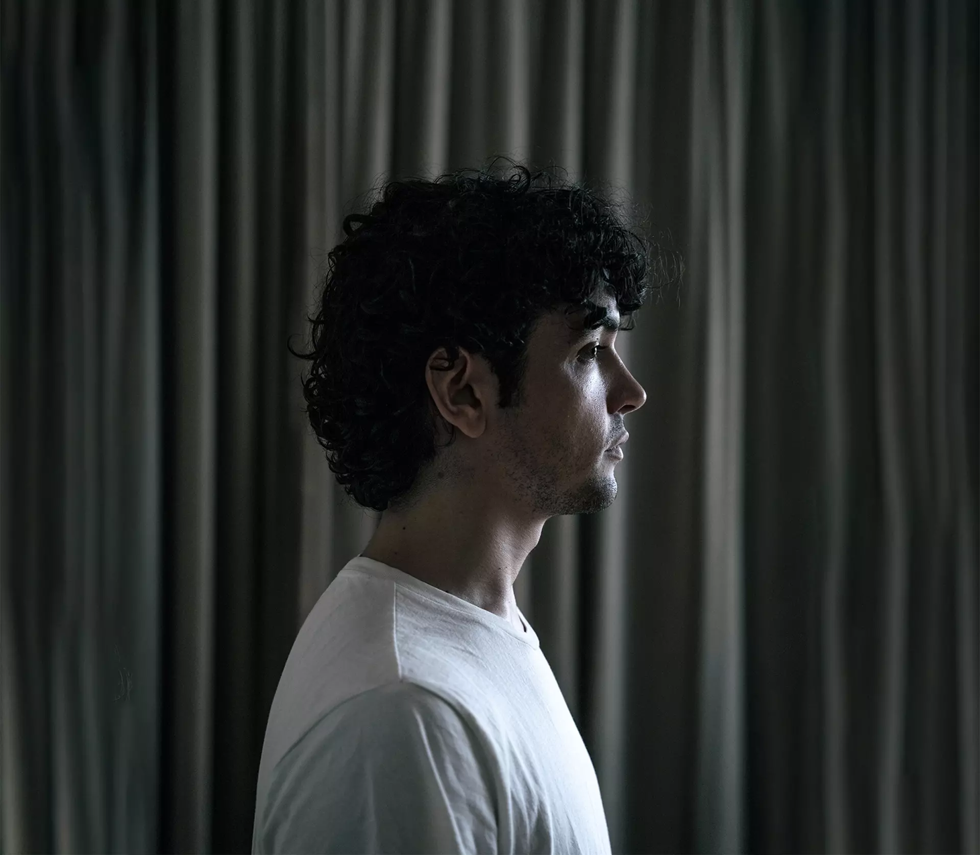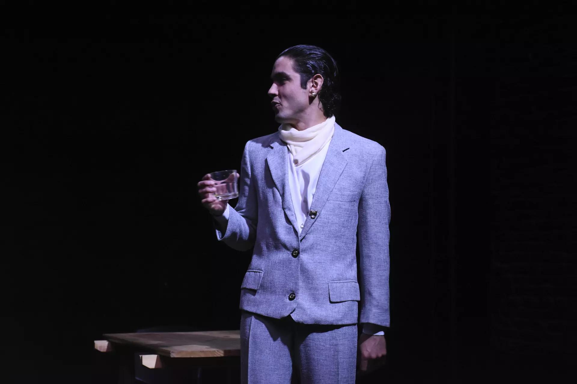 El actor entra a sala y se dirige a un espectador: “Voy a sentarme en la silla del escenario, te pido que cuentes unos 10 segundos y aplaudas”. Con ese aplauso y una luz cenital blanca, entramos en el universo de la obra.
