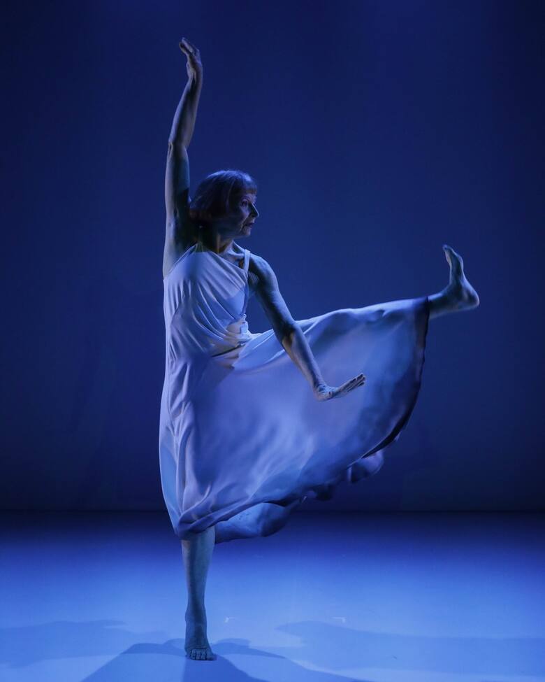 –En el caso de esta obra estuvo el ojo de Gerardo Litvak, que es el codirector. Entonces hubo un criterio de empezar por lo más viejo. Esa sí fue una decisión. Porque las cosas más nuevas de alguna manera se pueden ver. Mis últimos vídeos de danza todavía circulan y en cambio nadie sabe qué pasó en los ‘70 en los ‘80. Entonces me dijo que empezáramos con las fotos más viejas y yo tuve que hacer un trabajo en photoshop para poder iluminar los fotogramas como se hacía antes en las placas fotográficas que te las entregaban en negativo. Así que esas placas las recuperé, las recorté, las metí en photoshop, después la metí en el vídeo y logré que figuren como una especie de infinito que va y viene. Como un juego en el que estamos acá pero avanzamos y retrocedemos. Ese criterio fue el que nos inició en la obra y en la primera escena donde yo trabajo con el recuerdo de mis primeros solos sin que haya más que fotos. De los primeros trabajos no hay videos, entonces yo no podía decir “bueno voy a copiar algo que hice hace cincuenta”. La verdad es que no me acuerdo de ninguna coreografía de hace 50 años, pero sí me acuerdo de lo que puedo ver, o sea el clima, el sonido. En cambio en la obra de los pájaros, que era un dúo en el que yo bailo y hay un fondo azul, yo sí tengo la película, entonces apenas la veo mi cuerpo responde y repite. La obra está ahí, los músculos saben exactamente cómo se hace. Pero lo que no existe porque no hay vídeo lo tuve que reinventar. Por eso en la primera parte yo simplemente recuerdo algún movimiento y camino en esa ronda sin fin que es como una ronda del tiempo donde cada en cada paso que doy me voy acordando de algo. Se jugó de esa manera y esa fue una apuesta, una decisión de puesta teatral.