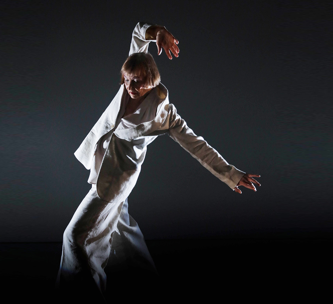 –En el caso de esta obra estuvo el ojo de Gerardo Litvak, que es el codirector. Entonces hubo un criterio de empezar por lo más viejo. Esa sí fue una decisión. Porque las cosas más nuevas de alguna manera se pueden ver. Mis últimos vídeos de danza todavía circulan y en cambio nadie sabe qué pasó en los ‘70 en los ‘80. Entonces me dijo que empezáramos con las fotos más viejas y yo tuve que hacer un trabajo en photoshop para poder iluminar los fotogramas como se hacía antes en las placas fotográficas que te las entregaban en negativo. Así que esas placas las recuperé, las recorté, las metí en photoshop, después la metí en el vídeo y logré que figuren como una especie de infinito que va y viene. Como un juego en el que estamos acá pero avanzamos y retrocedemos. Ese criterio fue el que nos inició en la obra y en la primera escena donde yo trabajo con el recuerdo de mis primeros solos sin que haya más que fotos. De los primeros trabajos no hay videos, entonces yo no podía decir “bueno voy a copiar algo que hice hace cincuenta”. La verdad es que no me acuerdo de ninguna coreografía de hace 50 años, pero sí me acuerdo de lo que puedo ver, o sea el clima, el sonido. En cambio en la obra de los pájaros, que era un dúo en el que yo bailo y hay un fondo azul, yo sí tengo la película, entonces apenas la veo mi cuerpo responde y repite. La obra está ahí, los músculos saben exactamente cómo se hace. Pero lo que no existe porque no hay vídeo lo tuve que reinventar. Por eso en la primera parte yo simplemente recuerdo algún movimiento y camino en esa ronda sin fin que es como una ronda del tiempo donde cada en cada paso que doy me voy acordando de algo. Se jugó de esa manera y esa fue una apuesta, una decisión de puesta teatral.