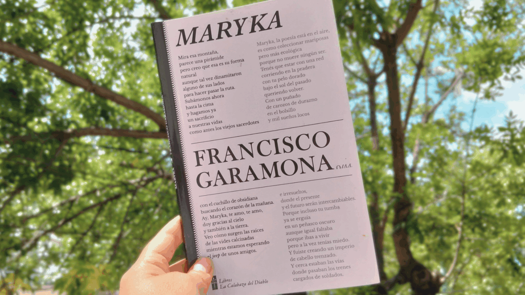 Esa tarde, en casa, salgo al balcón y me pongo a leer el poemario. El título es Maryka, editado por La Calabaza del Diablo. Hay un poema. Un poema casi épico, con tufillo a Paul Éluard. Le escribo por WhatsApp y se lo digo. “Puede ser”, me responde. ¿Qué es lo que me suena a Éluard de ese poema de Francisco? Claro, es esto: Contra la carne muerta / y por la sangre viva / contra la escuela abierta / y las carreteras encendidas, dice él. La repetición de la preposición es lo común, me digo: Sobre las sendas despertadas / sobre las carreteras desplegadas / sobre los lugares que desbordan / escribo tu nombre. El ardor de las calles, otro asunto común.