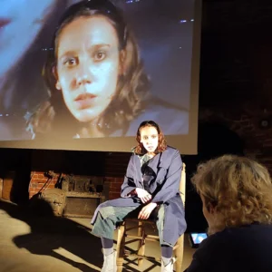 La obra comienza antes de la obra. El acceso a la sala requiere atravesar pasillos estrechos, escaleras que suben y bajan, puertas cerradas que se abren hacia cuartos aún más pequeños. El espectador desciende física, simbólica y afectivamente al sótano de la familia, a la basura bajo la alfombra. Cuando finalmente se accede al espacio escénico, el cuerpo ya ha sido moldeado por la incomodidad. Una habitación húmeda, sin ventilación, con una única ventana tapiada desde afuera y un escenario de tierra sellan la experiencia. El encierro no es solo un motivo, es una condición de posibilidad del teatro. No hay dudas. Estamos entrando al sótano de Fritzl.