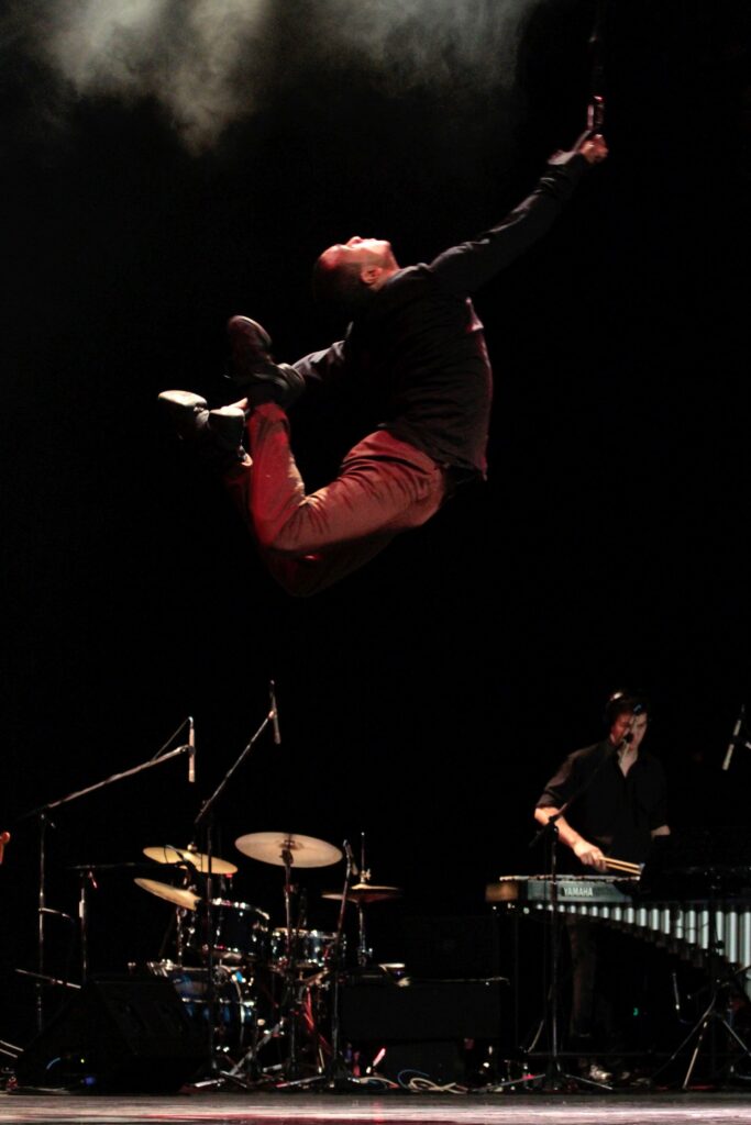 Una escena destacable es la protagonizada por el cantante, Alejandro Guyot, y una de las bailarinas. Guyot interpreta un tango que habla del recuerdo de una mujer amada, mientras que la bailarina emerge entre el humo como una aparición del narrador, que coquetea con su vuelo, pero que al final se retira abruptamente, como evaporada. También el solo de uno de los bailarines hacia la mitad de la obra resulta de los más atrapantes por su logro técnico y artístico. Después de experimentar 8cho, vale la pena quedarse a ver la muestra fotográfica para apreciar el trabajo de este grupo, que ha sido conformado por decenas de artistas a lo largo de los años. Angiel es una coreógrafa argentina que no ha dejado de innovar en las artes escénicas en escenarios de todo el mundo.