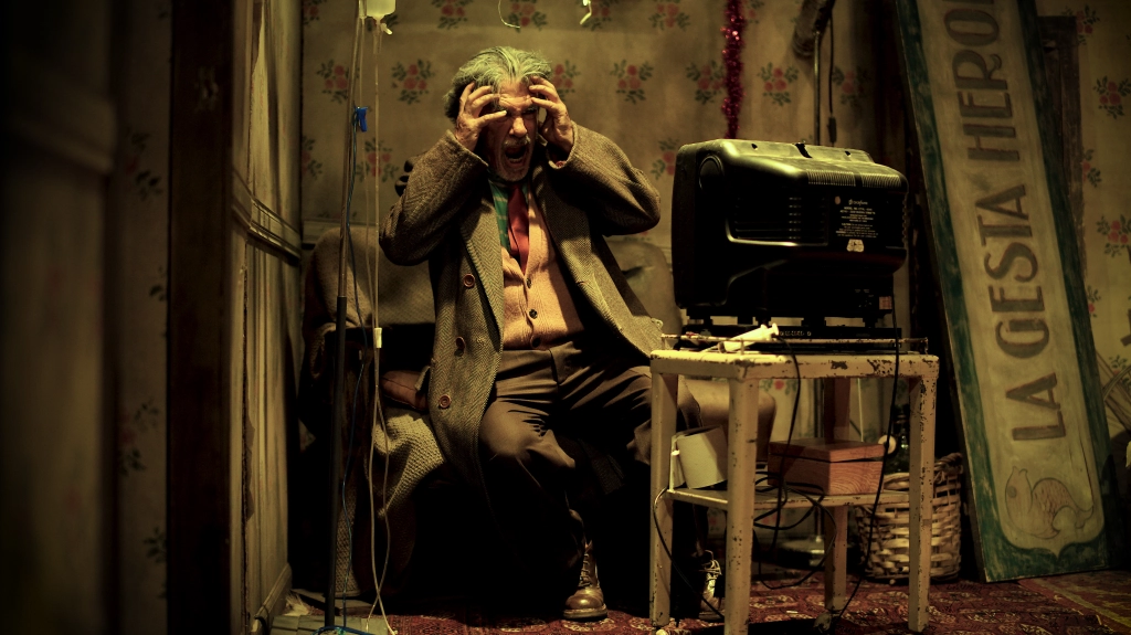 El padre es un anciano antipático, a ratos grotesco y furioso. Cuando recuerda La gesta heroica lo invade una mezcla de nostalgia y frustración. Por su parte, hay un vínculo distante con sus hijos, a la vez que espera ser tratado con afecto por ellos. Coincidentemente, el padre ve una y otra vez en un rincón extrañamente iluminado de su casa la película Rey Lear dirigida por dirigida por Michael Elliott (1983) basada en la tragedia de William Shakespeare (1603). El padre establece una identificación con el protagonista shakesperiano y trata de buscar luces sobre la relación que ha construido con sus hijos Ernesto, Lorenzo y Elena, y la relación que ellos mantienen entre sí por influencia de su padre.