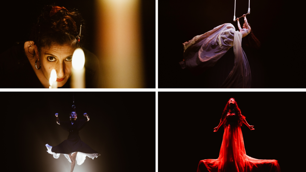 Sin embargo, Velar la noche no solo se vale del texto y los recursos del circo. Como en la vida, también narran los objetos, los movimientos y gestos. Los personajes se van presentando acompañados de elementos que los marcan y que son parte de la trama: tijeras, aspiradora, velas, un vestido de novia. Y por supuesto, el pelo.